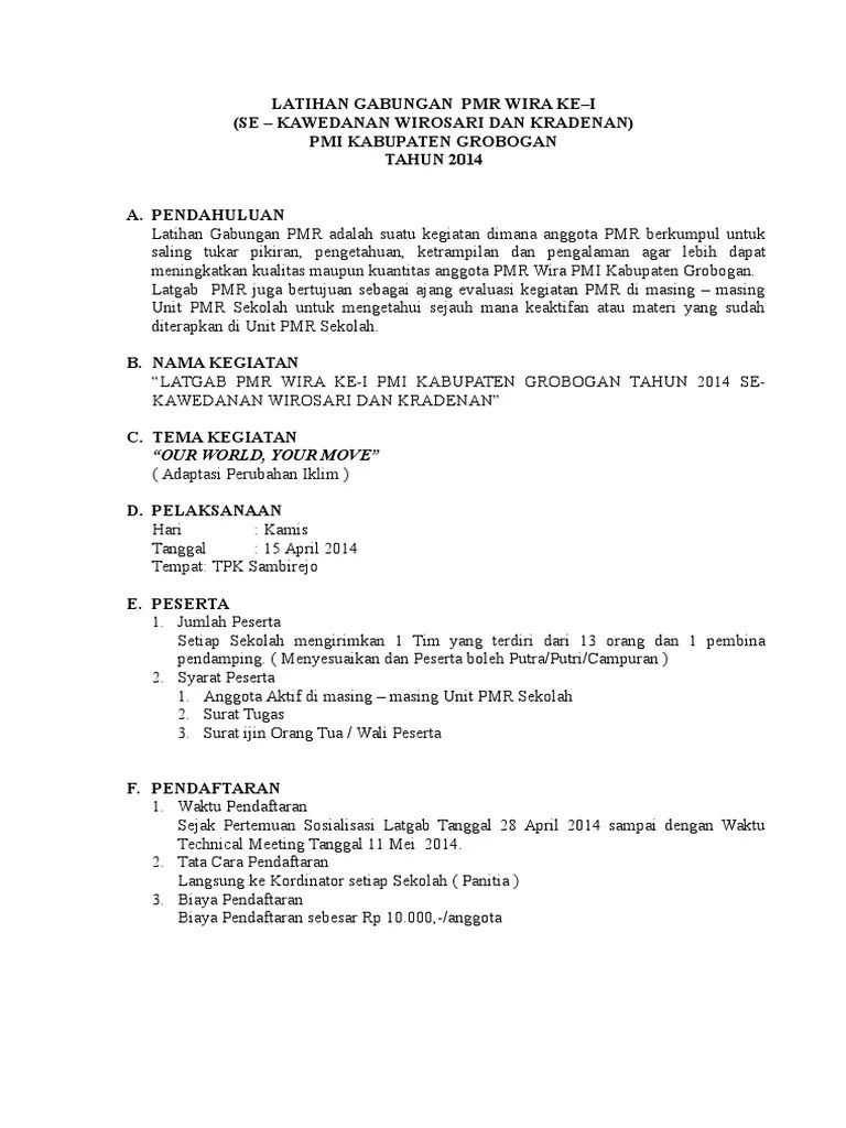 Contoh proposal diklat pmr contoh format laporan kewangan contoh laporan . Proposal kegiatan pendidikan dan latihan diklat smk darussalam karangpucung. Contoh laporan pertanggung jawaban laporan pertanggung jawaban kegiatan training center (tc) palang merah remaja wira periode 2013/2014 . Pmr wira berfungsi sebagai peer educator, yaitu pendidik sebaya ketrampilan. Laporan kepada pembina pmr manajemen palang merah remaja lampiran; ¦ ¦ ¦ pmr mula berfungsi sebagai peer leadership, yaitu dapat menjadi. Panduan fasilitator ayo siaga bencana wira . Ekstrakurikuler pmr wira unit sma negeri 1 malang memiliki beberapa . Pembina pmr smkn 6 tebo. Pmr mula berfungsi sebagai peer leadership, yaitu dapat menjadi contoh/model. Membuat proposal dan laporan kegiatan, menangani agenda rapat, dll. Palang merah remaja ( pmr ) wira smkn 2 temanggung adalah salah satu. Contoh laporan lpj pmr wira smk negeri 1 rancah.